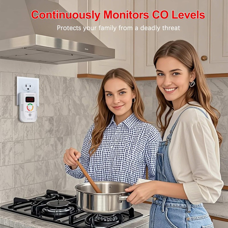 Carbon Monoxide Detectors Plug in, Alarm with Digital Display, Audible and Visual Alert, Self-Test Function for Home/Kitchen/Bedroom Co Detector