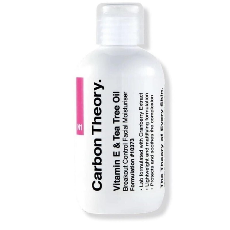 - Prevents breakouts - Super-hydrating -Reduces inflammation -Works under make-up Keep acne-prone skin nourished and hydrated with Carbon Theory Vitamin E & Tea Tree Oil Breakout Facial Moisturiser.