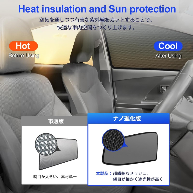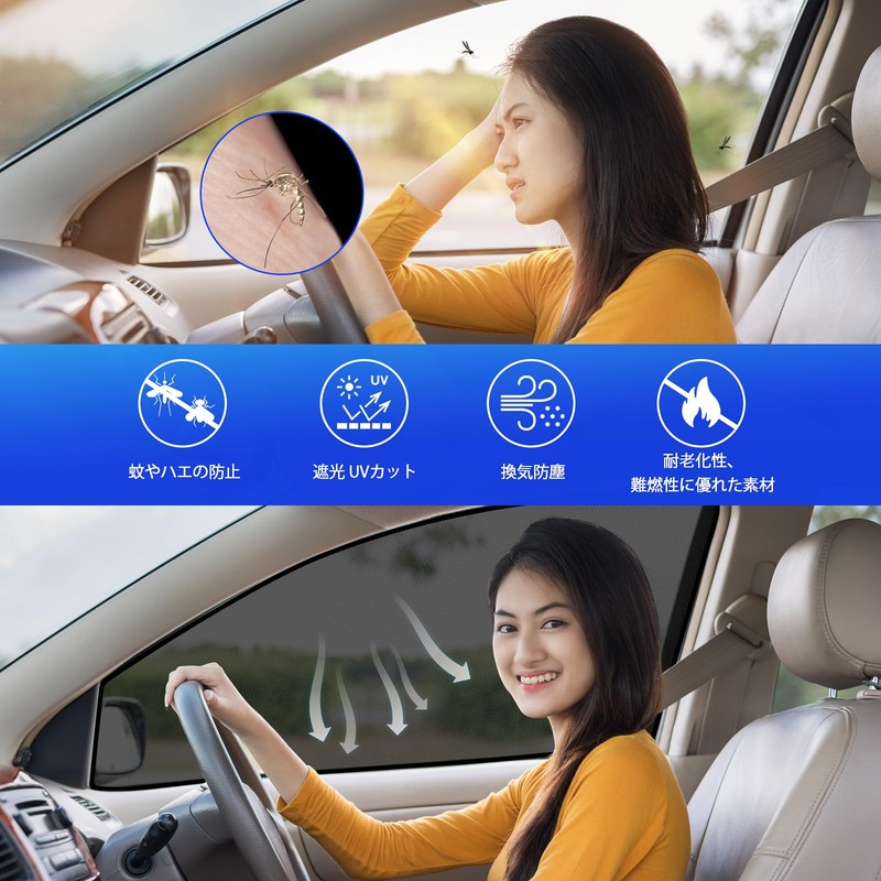 - (Light and Insect Blocking, Breathable) They do a great job blocking sunlight.Protects your vehicle's interior from sun degradation as well as your skin.The mesh fabric allows air to pass through, creating a comfortable interior that lets you feel the breeze even in summer.In addition, it offers full protection that prevents mosquitoes and flies from entering. It lets both adults and children rest safely, as it protects them from pests during car camping or naps.