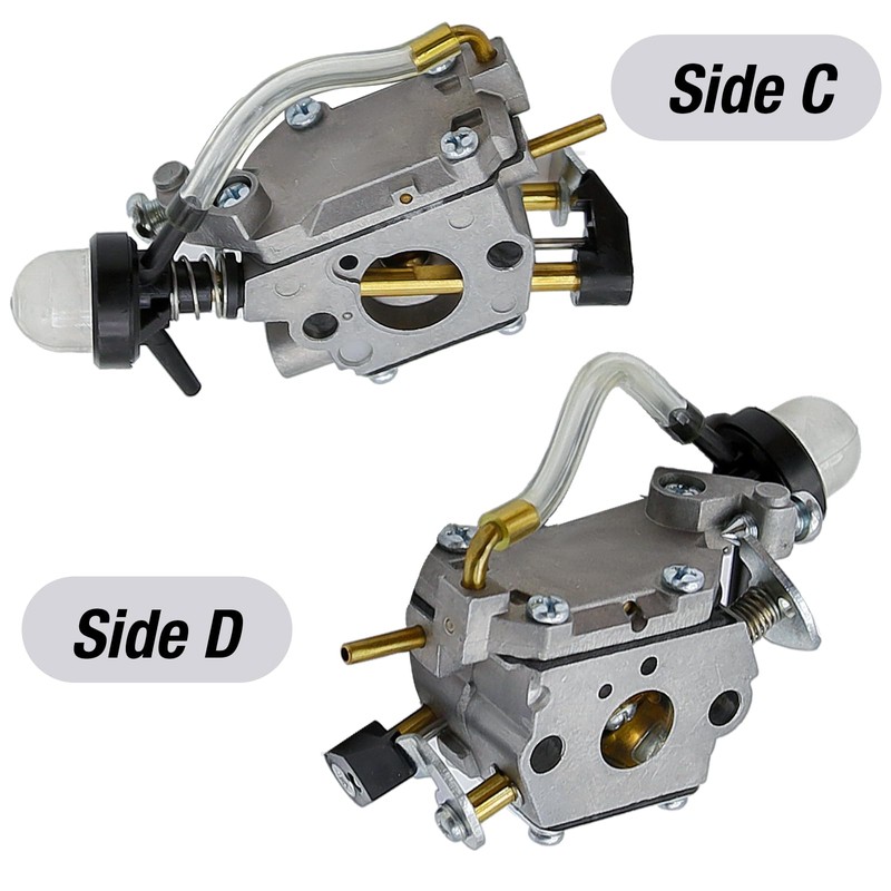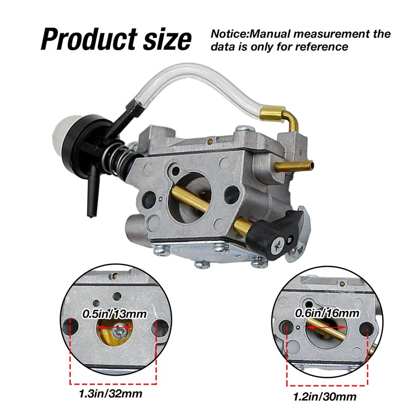 - [Package Includes]: carburetor, air filter, 2 oil filters, casket, 2.5*5*630 fuel line, 2×3.5×630 fuel line, 1 spark plug, screwdriver, oil can hook.