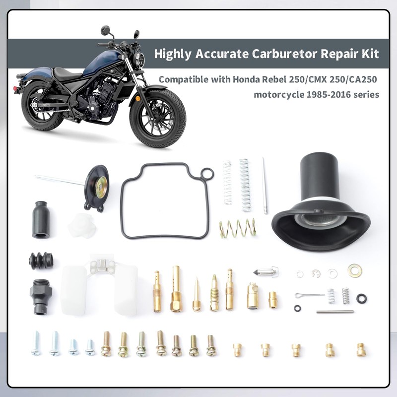 Erchon Carburetor Repair Kit Compatible with Honda Rebel 250/CMX 250/CA250 1985-2016 Version Motorcycle, Single Carburetor Version with Plunger Assembly