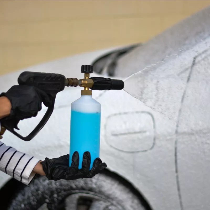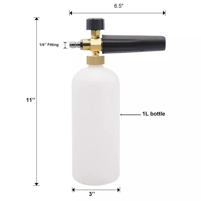 - Usage Instructions: Fill the included 32oz bottle with water; add our Premium Auto Soap (or your choice of water soluble cleaning agent); attach the bottle to lance; the lance head to your hose; adjust the air intake (knob) to achieve desired spray width; foam away! For traditional soaps and shampoos we recommend a 32oz to 2-4oz (approx 10:1) ratio of water to cleaning solution.