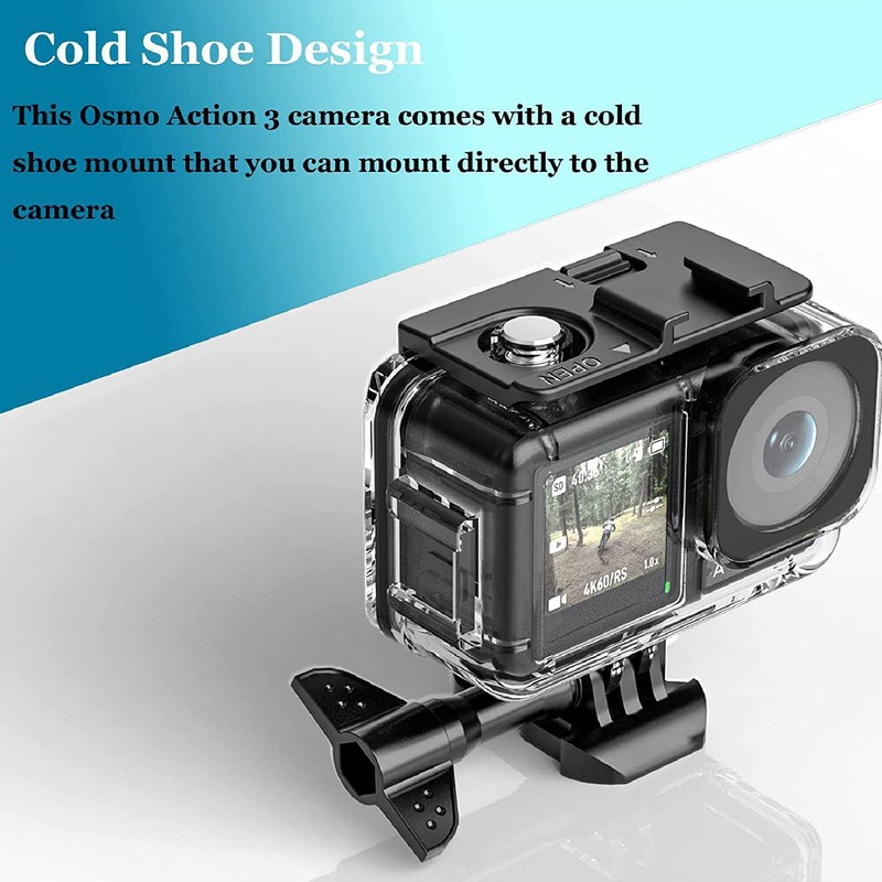 - Instalación rápida: el marco protector de Action 3 se puede instalar y quitar rápidamente. Compatible con otros accesorios como palos para selfies, el Action 3 es fácil de usar y se puede operar fácilmente bajo el agua con el obturador, el botón de encendido o usando el botón de selección de botón externo, el botón de modo.