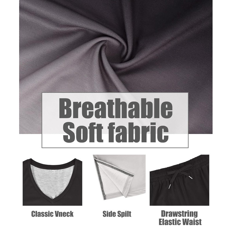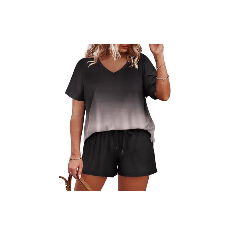 • Stylish Design: Womens 2 piece shorts set with basic yet classic vneck, trendy gradient pattern, beautiful summer tops with elastic waist plus size shorts, short sleeve to cover your upper arms, long enough to cover your hips and belly, and even have pockets!