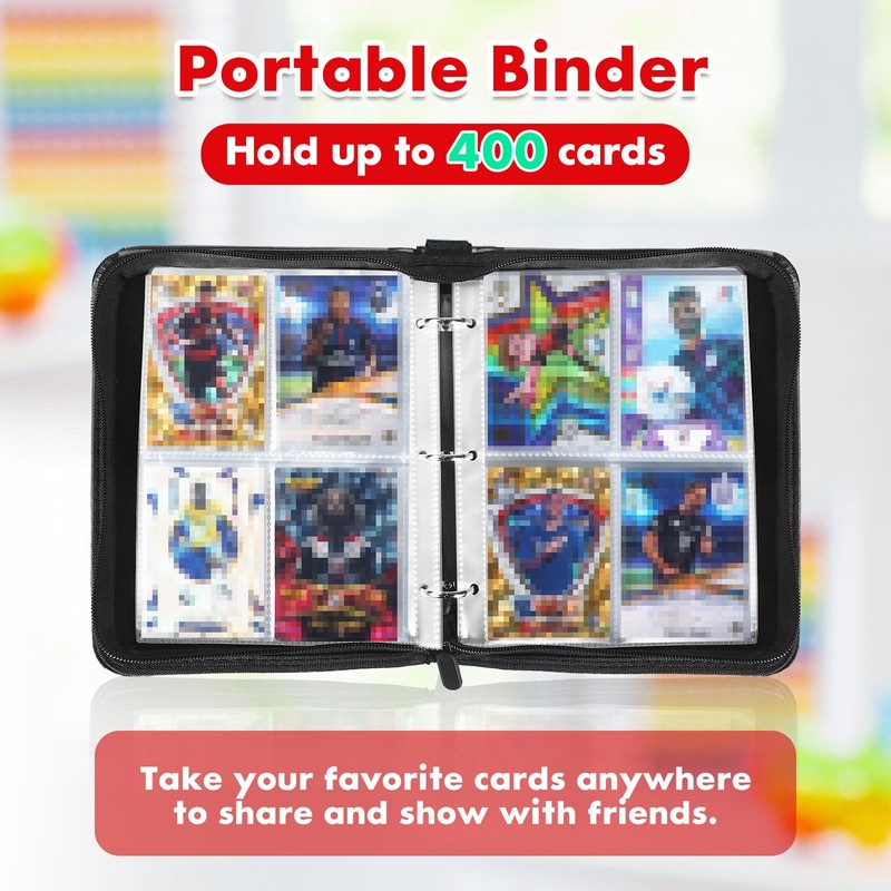 - 👍 Large capacity :4-bag card holder, 50 page set, can accommodate 400 cards. Store and display your cards in this transaction card binder to maintain keep them organized.