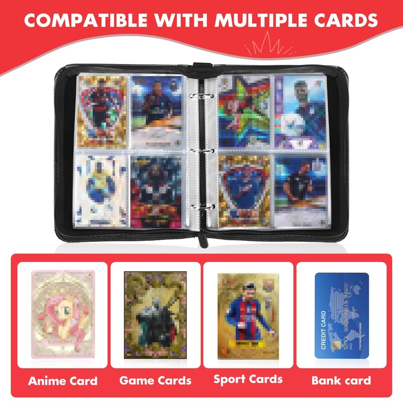 - 👍 WIDE APPLICATION--The card binder is compatible with standard-size various cards. Examples: Football cards, Baseball cards, Playing cards, credit cards, etc. Fully able to meet your needs for card collection.