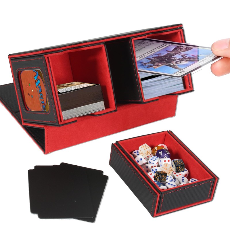 - ★Spacious Storage Capacity: This MTG deck box features two compartments with dividers and a dice compartment, capable of holding up to 240 single-sleeved cards or 200+ double-sleeved cards, offering ample space for your entire collection.
