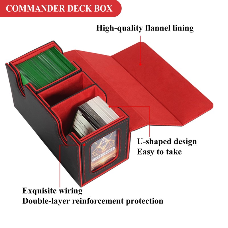 - ♥Universal Compatibility: With its strong magnetic clasp and versatile design, this deck box is suitable for storing all TCG/CCG or collectible card games, including but not limited to Magic: The Gathering, Pokemon, YuGiOh!, Star Wars X-Wing, Game of Thrones, World of Warcraft, Force of Will, Five Rings, Cardfight!! Vanguard, Duel Masters, Panini Soccer, Baseball, Basketball cards, and more. It's the ideal gift for any card game enthusiast, specifically designed for Commander EDH players.
