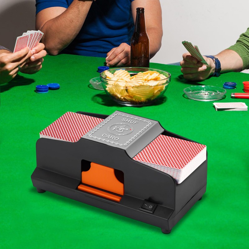 - AVOID SCAM AND FAIR PLAY The use of this device is not only a technological leap over traditional manual shuffling of cards, but also a noble tribute to the spirit of fair play. It eliminates the concerns about fraud. HIGH SPEED MIXING OF CARDS The shuffler inserts the playing cards into the machine evenly and precisely, shuffling them in just one minute, which improves the efficiency of shuffling.