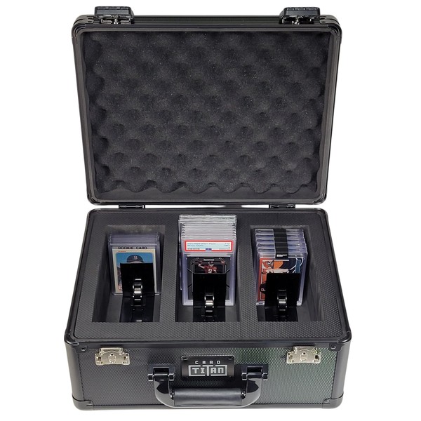 Card Titan Vault Trading Card Storage Box - Lockable Sports Cards Hard Case with Spring-Loaded Pushers for Top Loaders & Graded Cards - 3 Row