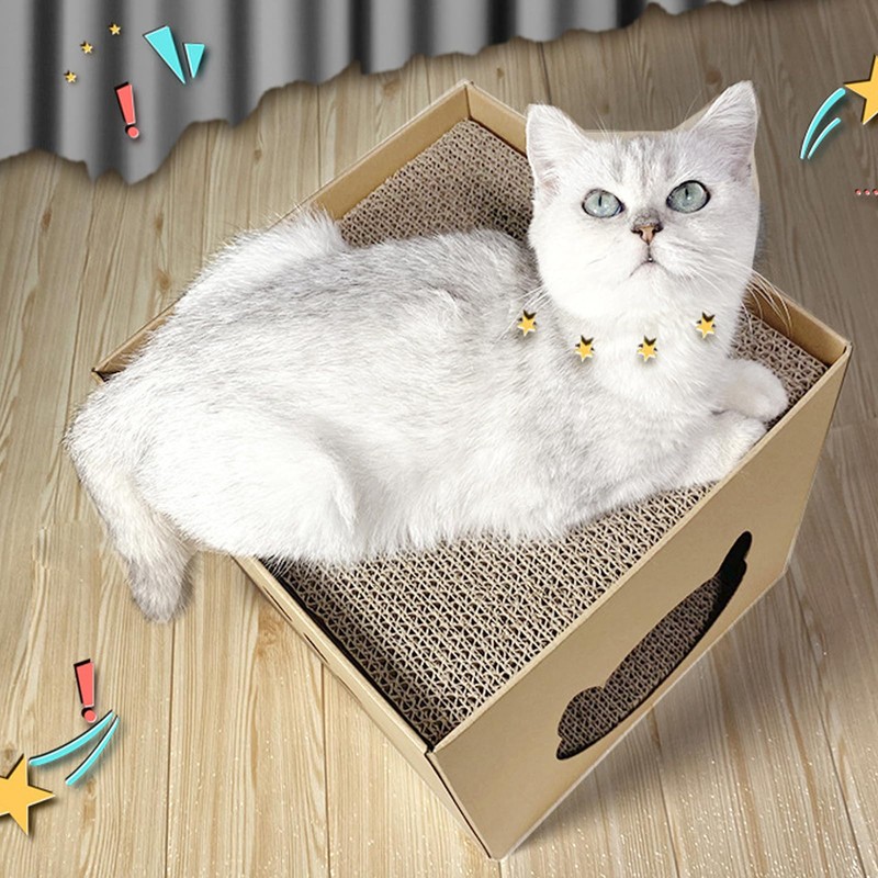 Cardboard Cat House Cats Corrugated Scratcher Box Bunny Small Animals Large Cats Cute for Indoor Toy Hideout Desigh Medium Kitten (11.8 * 11.8 * 11.8)
