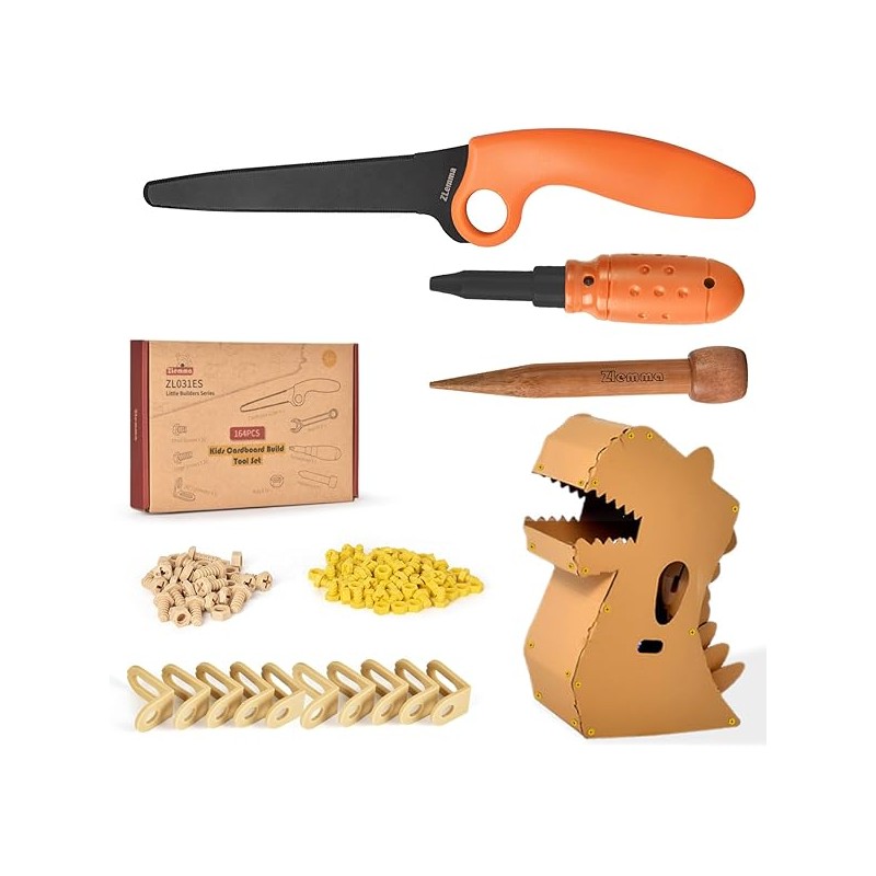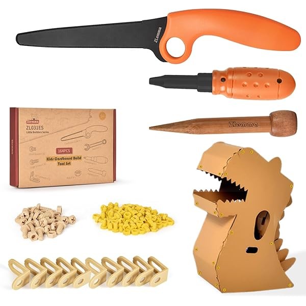 Cardboard Construction Tool Kit 163 Pieces-Educational Toys for at-Home Play + Classroom Learning | Reusable Cardboard Tools for Kids