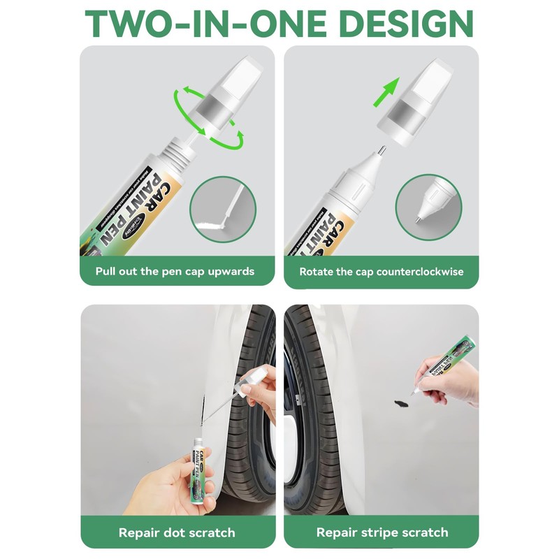2-in-1 Paint Pen: Two strokes in one head, making it more convenient and accurate to handle scratches.