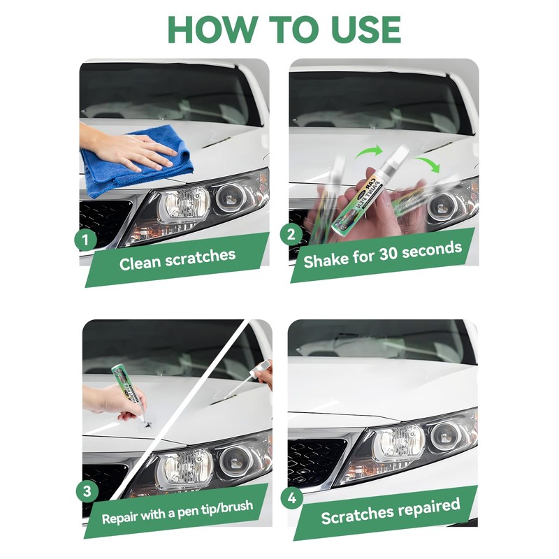 - Easy TO USE AND FAST CURING: The two-in-one design makes this car scratch remover pen easy to use. Just shake the pen well, unscrew the pen cap, and then use the brush to lightly apply along the direction of the scratch. Wait for 10 minutes and your car will look brand new.
