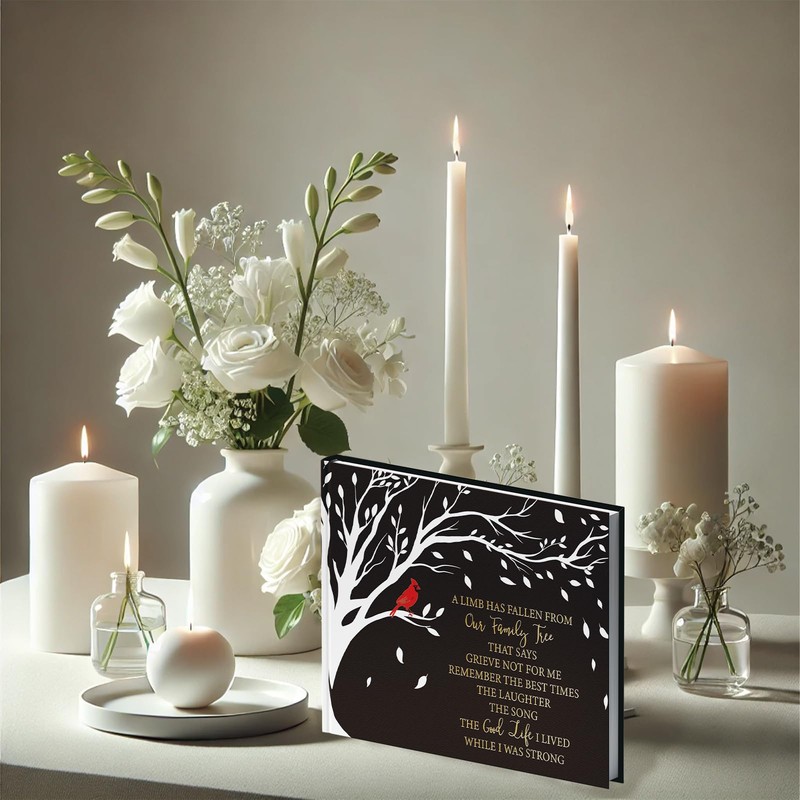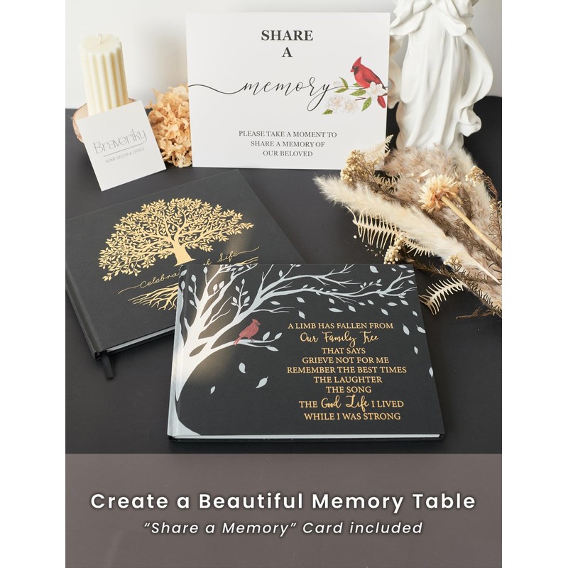 Cardinal Funeral Guest Book - in Loving Memory Guestbook with a Memory Table Sign - 320 Entries Hardcover Memorial Guest Sign in Book for Funeral Service, 9"x7.5", Black