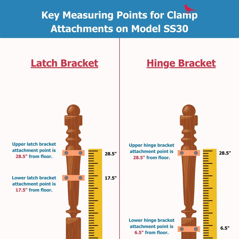 - EASY TO INSTALL - Quickly and easily install our clamps with the included assembly instructions and necessary hardware. Please follow the instructions to install your Cardinal Gate. Recommended for indoor use only.
