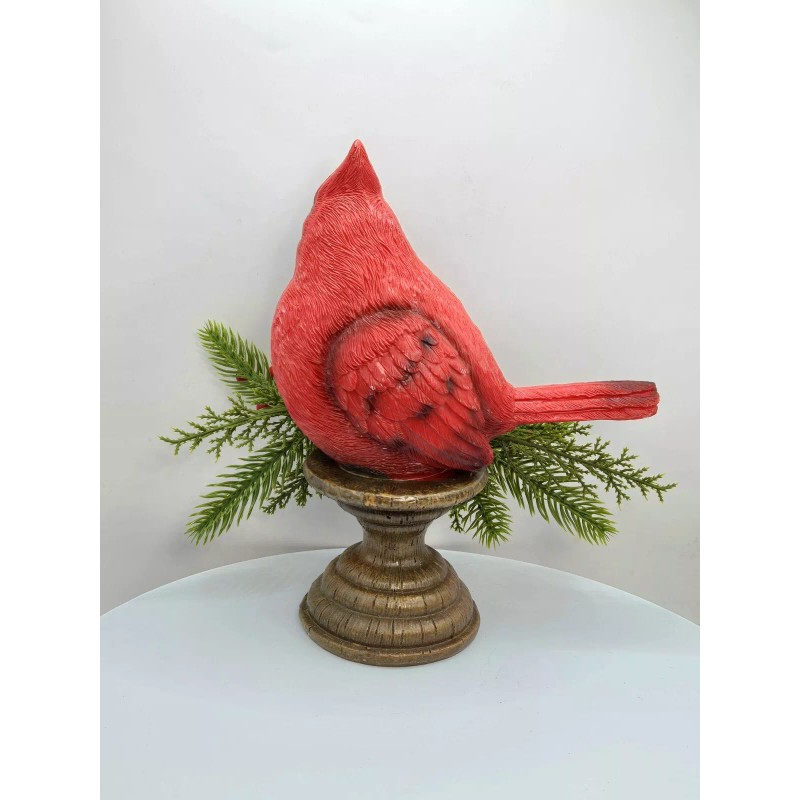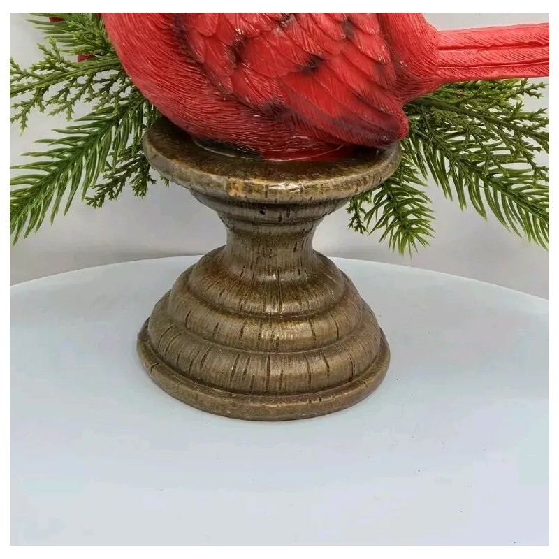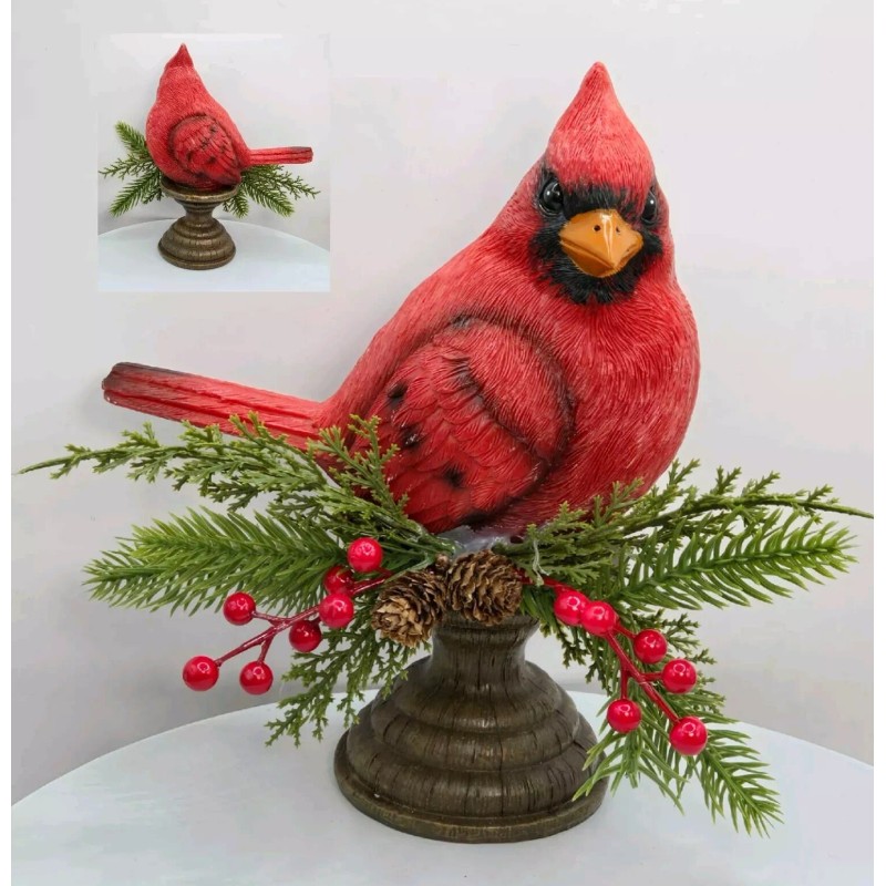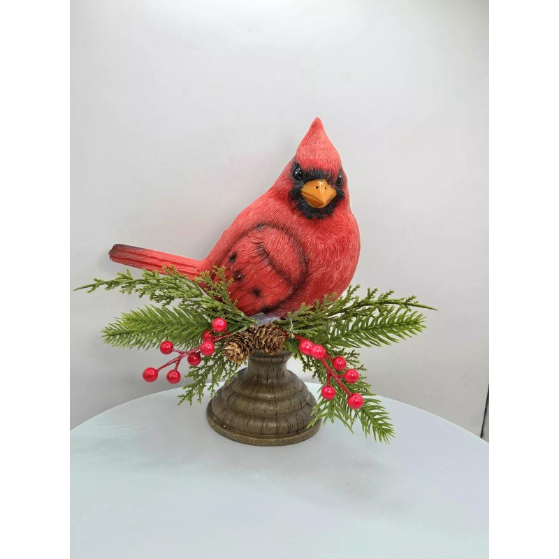 When a Cardinal is present, a loved one is near! What a beautiful addition to any and all holiday decoration . The 8 inch red bird with red berries and branches sit upon on wood look pedestal.