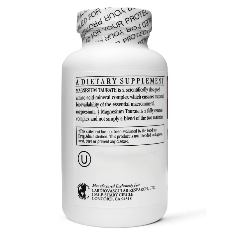 Cardiovascular Research magnesium taurate saver pack lasts up to 6 months - a scientifically-designed amino acid mineral complex which insures maximal bioavailability of the essential macro mineral magnesium