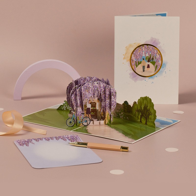 Cardology - Wisteria Pop-Up Greeting Card | 3D Wisteria Garden Scene, Romantic Anniversary Card, Engagement Card or Wedding Congratulations Card | Handmade