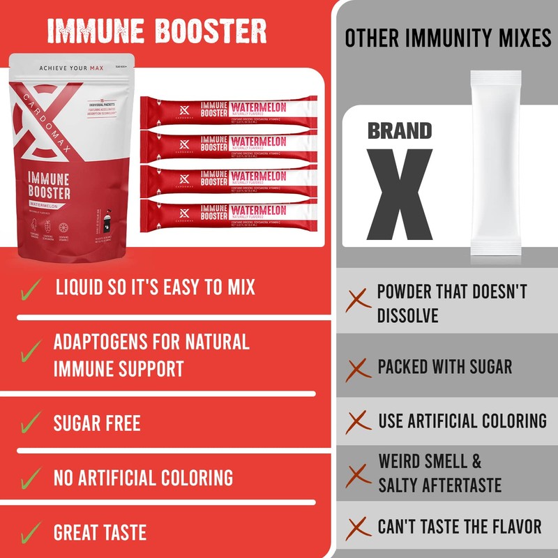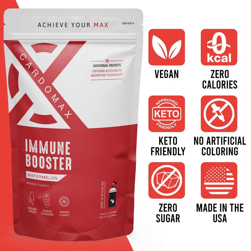 - PREMIUM IMMUNE SUPPORT - Watermelon flavored Immune Booster from CardoMax is packed with natural ingredients to support your immunity. Siberian Ginseng is a natural adaptogen that helps fight cold & flu symptoms, Schizandra improves blood flow, and Vitamin C helps boost immunity.