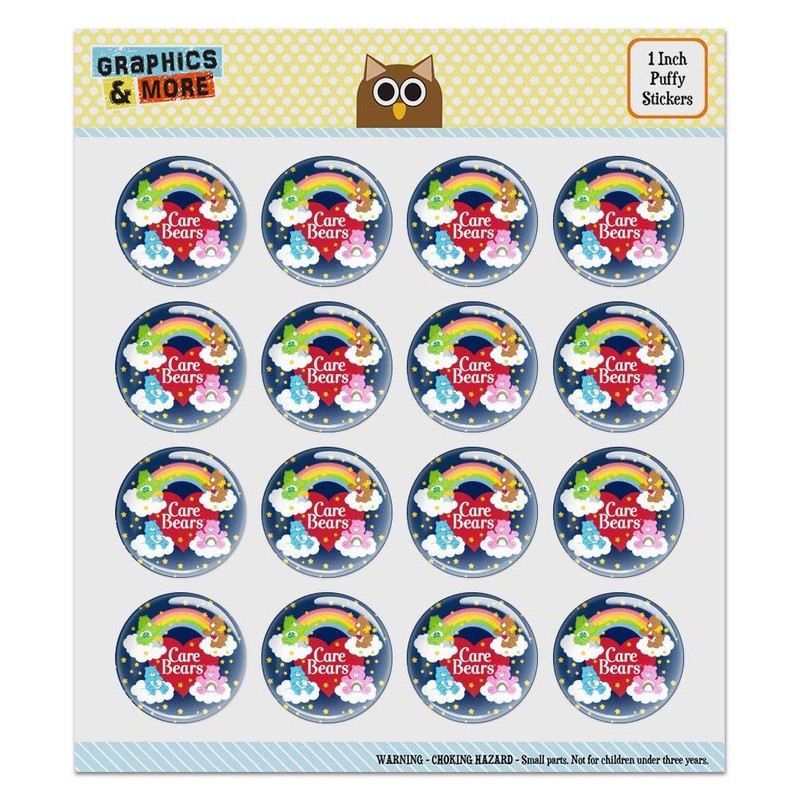 About The Product: These wonderful puffy stickers will delight your fingertips, while the variety of designs and sizes available will dazzle your visual senses! These stickers are printed on high-quality adhesive vinyl before being coated in a urethane resin, which gives them that extra dimension of fun. Purchase just one sheet and leave your mark on every flat, firm surface you encounter, or splurge on a few different designs so you can keep it fresh! Made in the USA by Graphics and More. About The Design: The Care Bears are characters painted by Elena Kucharik in 1981 for use on greeting cards by American Greetings. Each bear comes in a different color and has a specialized insignia on its belly called a "belly Badge" that represents its personality.