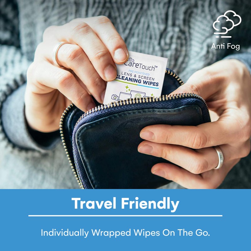 Care Touch Care Touch Lens Wipes for Eyeglasses - 100 Individually Wrapped Pre-Moistened Glasses Wipes - Cleaner for Glasses, Sunglasses, and Screens - Gentle and Portable for On-the-Go Cleaning - 4x8 Inches