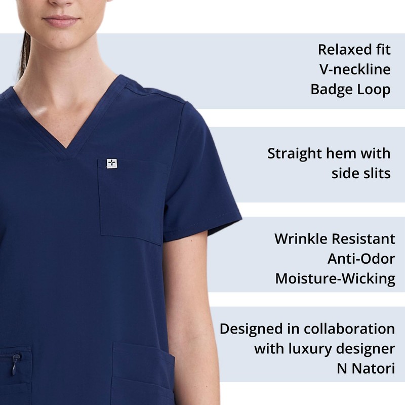 Care+Wear Camiseta médica de 2 bolsillos para mujer con cuello en V, incluye bolsillo en el pecho y el bolígrafo, resistente a las arrugas con lazo para insignia, Azul Marino, XX-Small