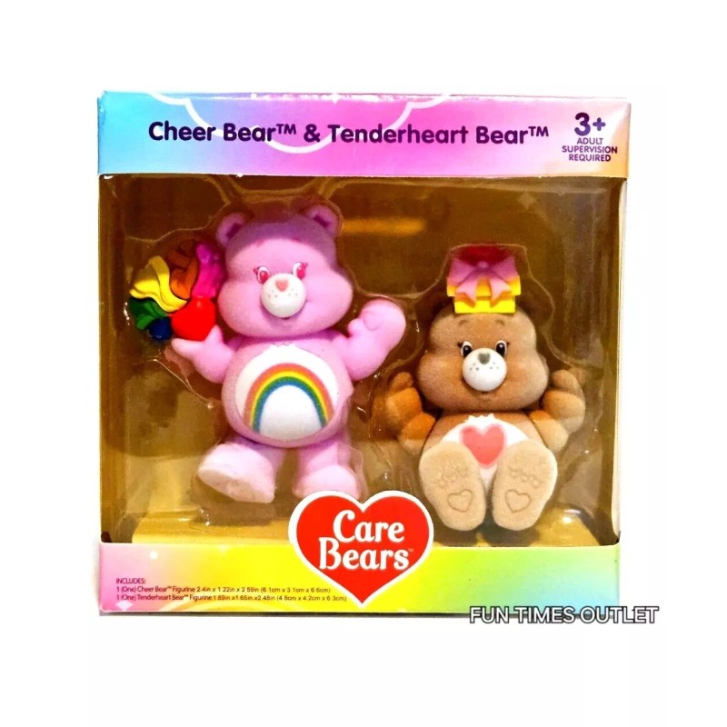 Care Bears Flocked Figures Pack Of 2 Cheer Bear And Tenderheart Bear