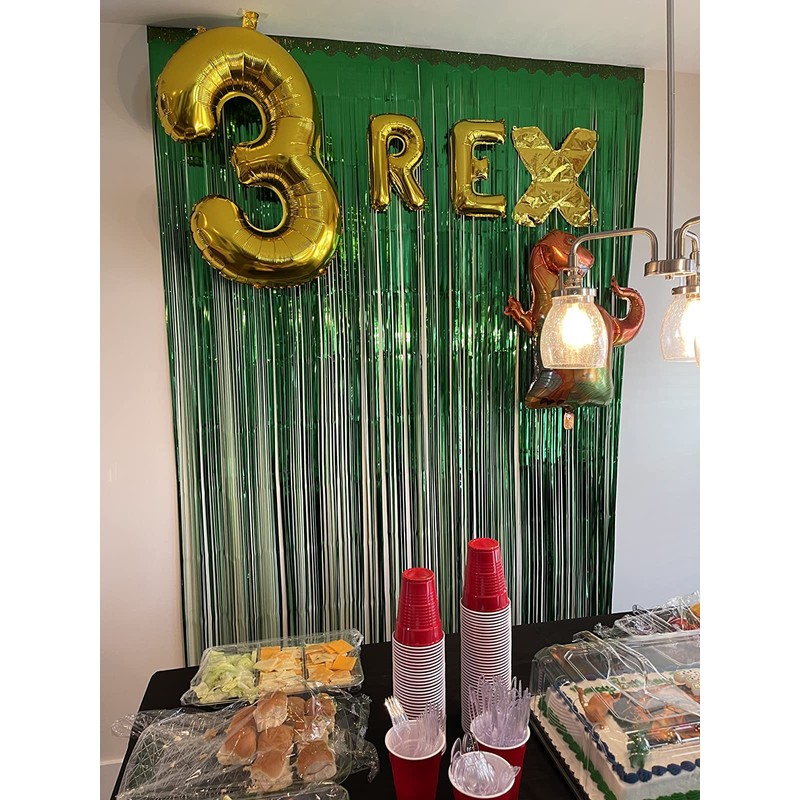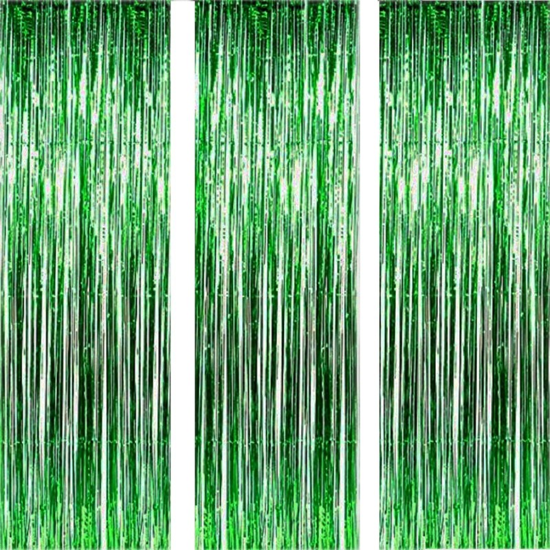 CareCheer 3 Pack 3.2ft x 6.6ft Green Metallic Foil Fringe Backdrop Tinsel Spa...