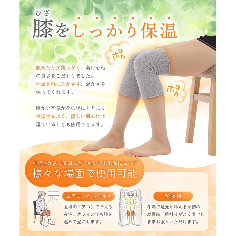 - ✅【膝周りの冷えでお悩みありませんか】 冷えからくる膝痛、エアコンで足元が冷える、寝るときにも着用できるものがいいなどのお悩みの方に。ひざウォーマーなら膝周りを保温して、温かくすごしていただけます。