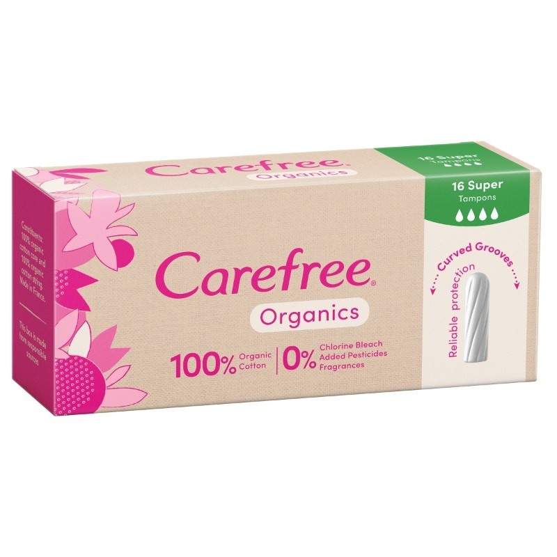 Carefree Organic Super Tampons are made with 100% Organic Cotton. With curved grooves are specially designed so you feel better protected during your period. Suitable for heavy flow.