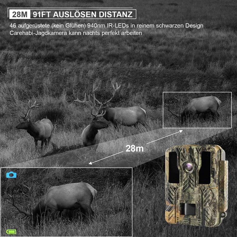 CareHabi 24MP 4K Wildlife Camera Night Vision Device with 64 GB SD U3 Memory Card 46 Pieces 940 nm IR LED 28 m Night Vision Thermal Imaging Camera Hunting Night Vision IP67 Waterproof 0.2s Quick