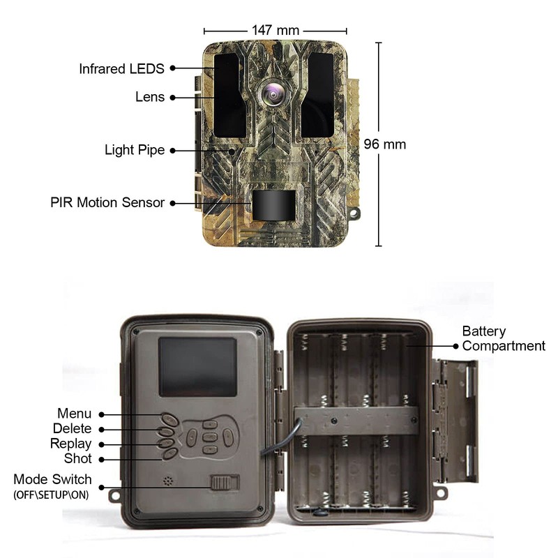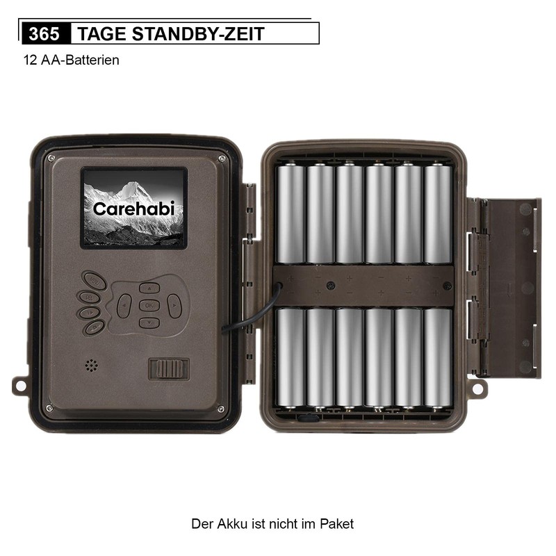 - Longer Standby Time: Carehabi has made a structural improvement to the traditional hunting camera. The extended battery compartment allows you to use 3 sets (12 pieces) of AA batteries, which extends the life of the batteries by 30%.