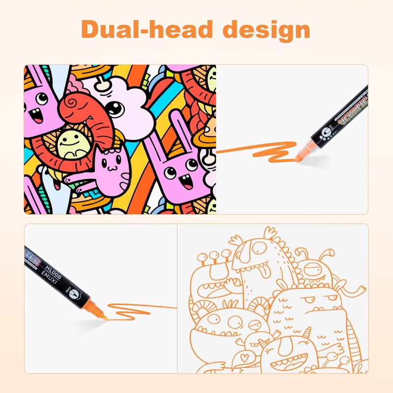 - Quick-drying and waterproof: when you use the acrylic pen on the drawing paper, you will feel dual tip acrylic pens not only dries quickly, but is also waterproof, even if the painting work is stored for a long time, they will be very bright in the colour under the light.
