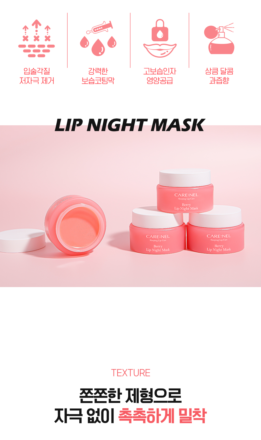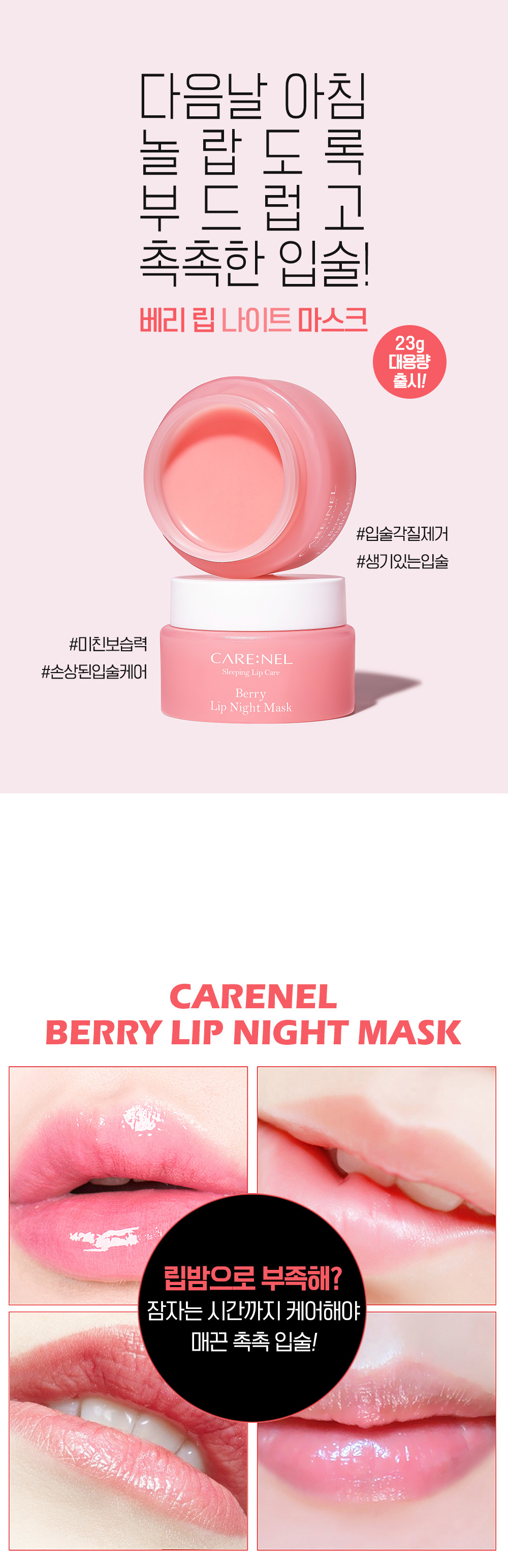 Carenelle Berry Lip Night Mask 23g Removes dead skin cells and moisturizes lips while you sleep. / 까레넬 베리 립 나이트 마스크 23g 잠든 사이 입술각질 제거와 고보습케어