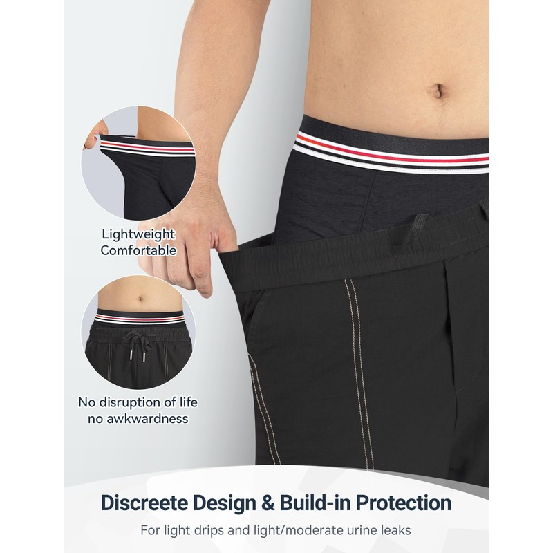 Carer 3 Pack Men's Incontinence Boxer Brief Washable Light & Thin Cotton Incontinence Pants with 80 ML Absorbent Pad Prevents Bladder Leaks Designed for Mild Incontinence Black M