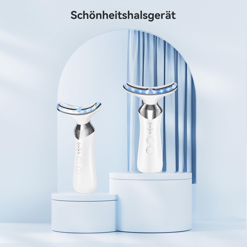 - Multifunctional collaboration: a neck beauty device combines RF (radio frequency), LED light therapy, ultrasonic vibration and microcurrent to revitalise the skin, promote blood circulation and stimulate the production of collagen