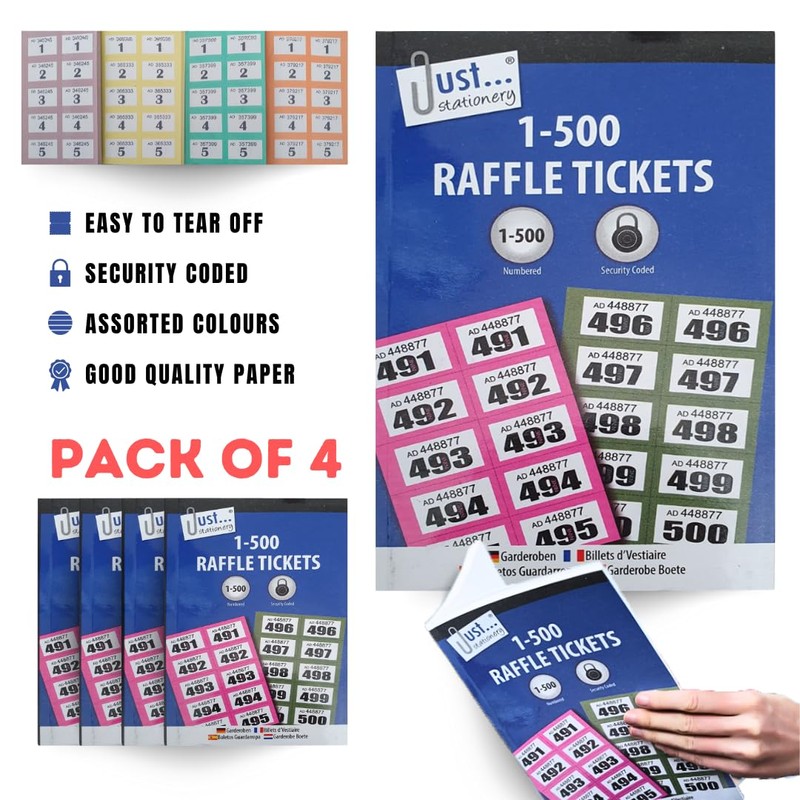 - { PROPER PACKAGING }Package includes 4 book of 1 - 500 Numbered Cloakroom, Raffle Tickets