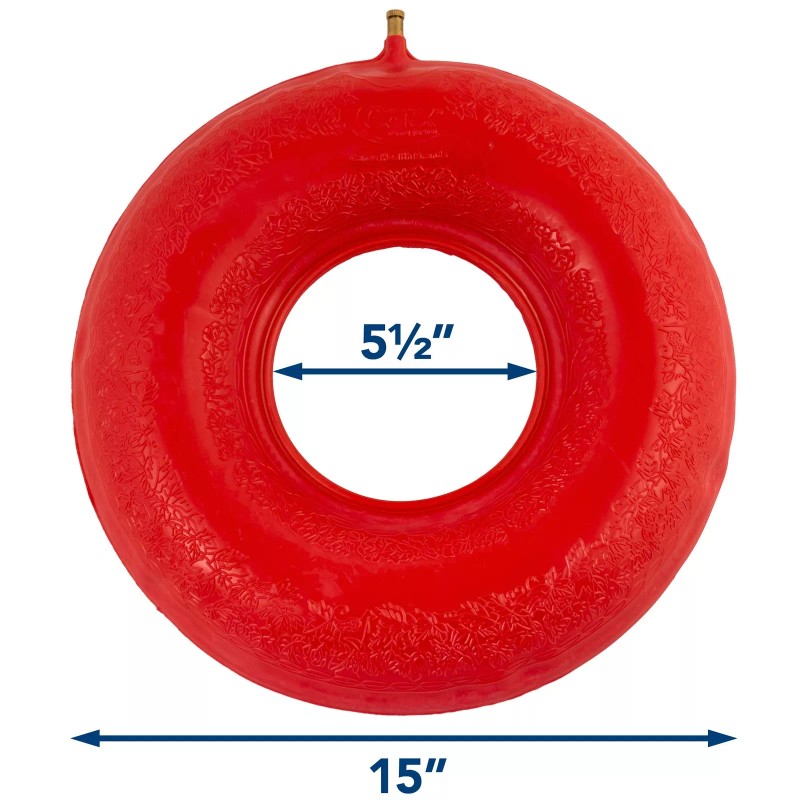 INFLATABLE DONUT PILLOW: Easy to inflate & deflate this rubber donut shaped ring cushion makes sitting for a long time more comfortable. This cushion is a great sitting pillow and will help relieve hemmoroid pain, tailbone pain, and sciatica.