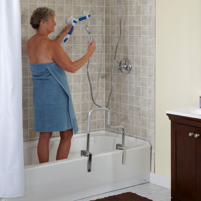 - INDEPENDENT MOVEMENT: Increase your independence in getting in and out of the bathtub with Carex Tri-Grip Bathtub Rail. The three textured gripping areas with textured finishes allows for a safe entrance or exit from the bath with solid support and grip.