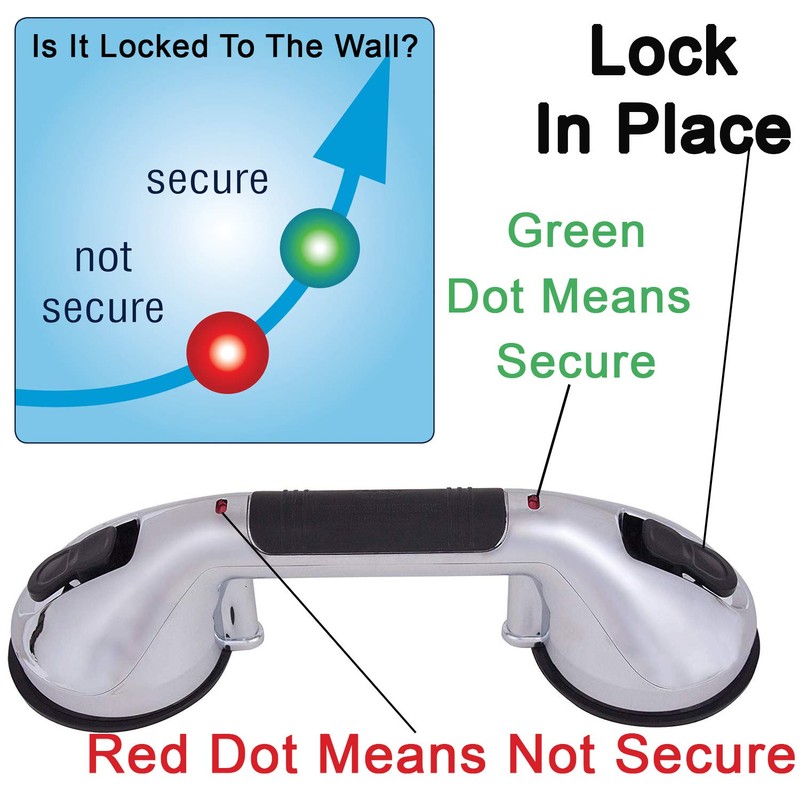 - HANDICAP GRAB BARS with suction cups keep the shower bar attached to the shower and bath wall securely. The shower handles indicator tells the user whether the handle is safe to use or not. A green indicator means the wall bar is safe to use.