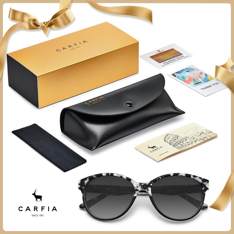 - Box Within Box & No-Risk Buying - We send Embossed Leather Case for better sunnies storage. Rich package including: Cat Eye Black White Women's Sunglasses, Soft Cleaning Cloth, Specific Instructions, Polarization Testing Card & Hard Protection Box. We also support fast and satisfactory after-sales solutions, if sunnies has any issues, please contact us for satisfactory solution.