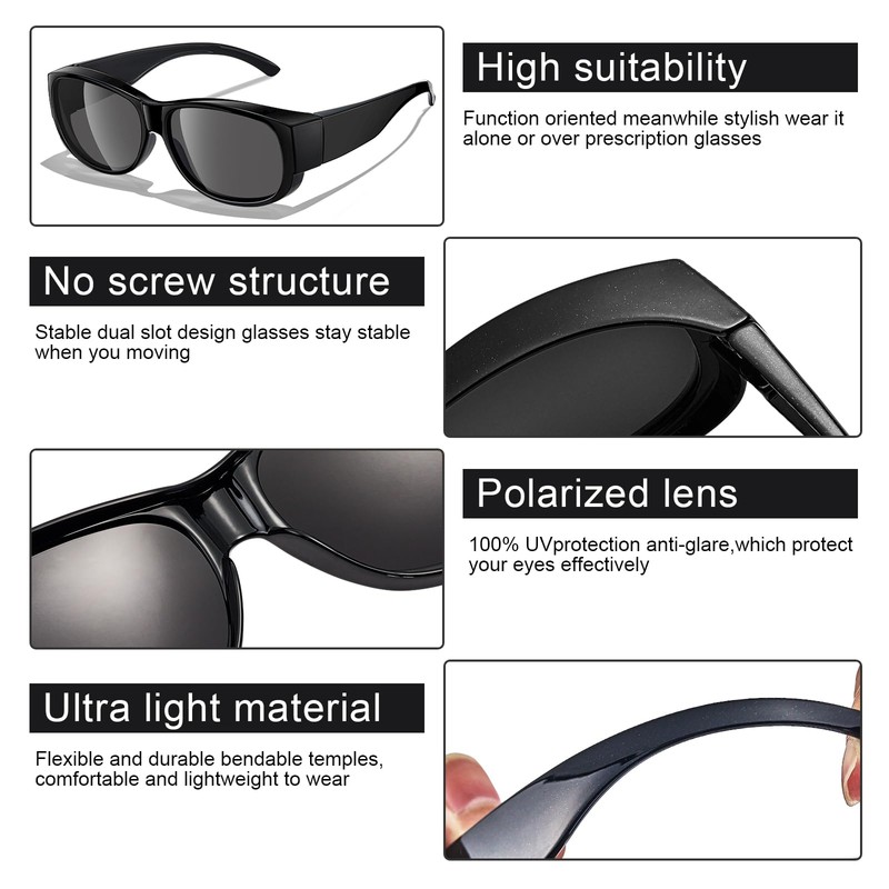 These polarised sunglasses optimise the clearest, sharpest and most accurate vision by filtering out 99% of reflected glare without the clouding and optical distortion that can occur with conventional polarized lenses. Over glasses are specially designed for people who wear glasses.