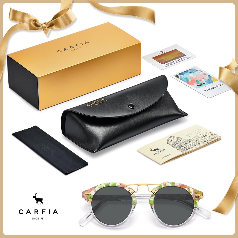 - Box Within Box & No-Risk Buying - We send Embossed Leather Case for better glasses storage. Rich package including: UV400 Green Tortoise Womens Sunglasses, Soft Cleaning Cloth, Specific Instructions, Polarization Testing Card & Hard Protection Box. We also support fast and satisfactory after-sales solutions, if sunnies has any issues, please contact us for satisfactory solution.