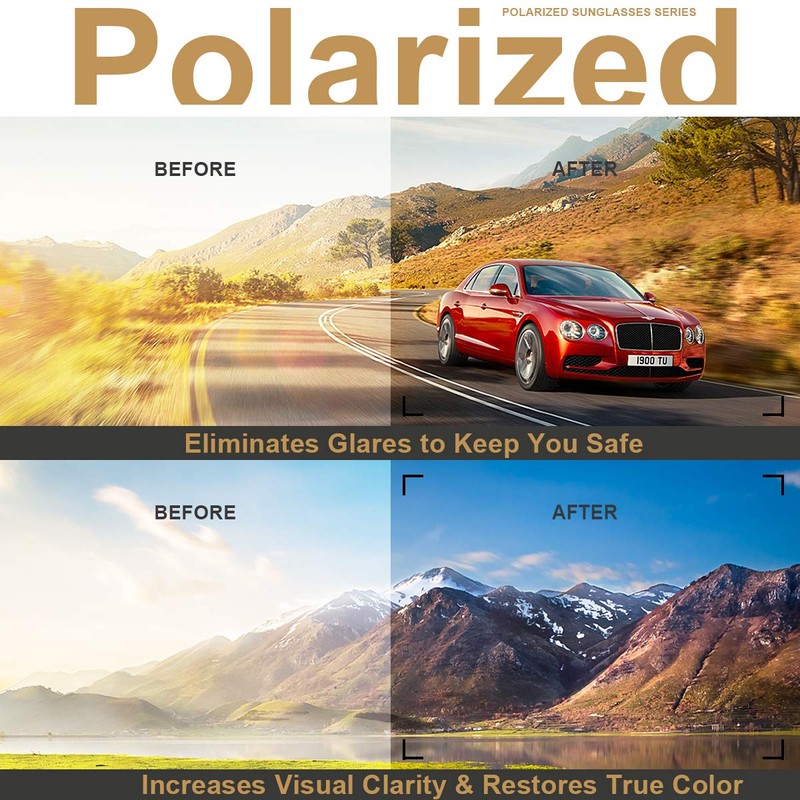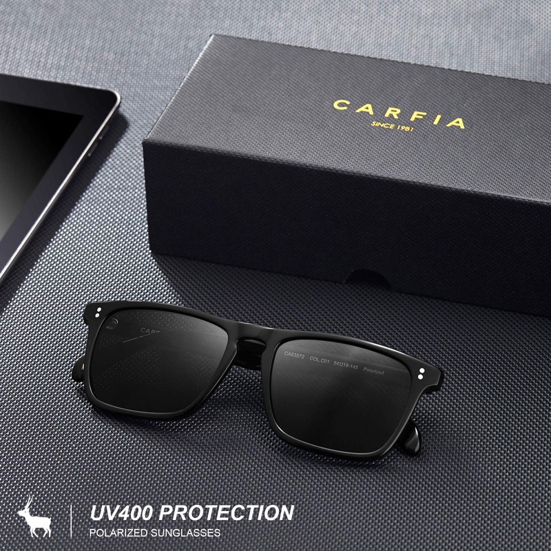 - Features excellent polarized coating and 100% UVA/UVB Protection. CARFIA UV400 Polarized Men Sunglasses are engineered to cut 99% of glare from paths and pavement. Perfect for sports outdoor activities, the lake, golf, travel, driving and block the sun throws at you!