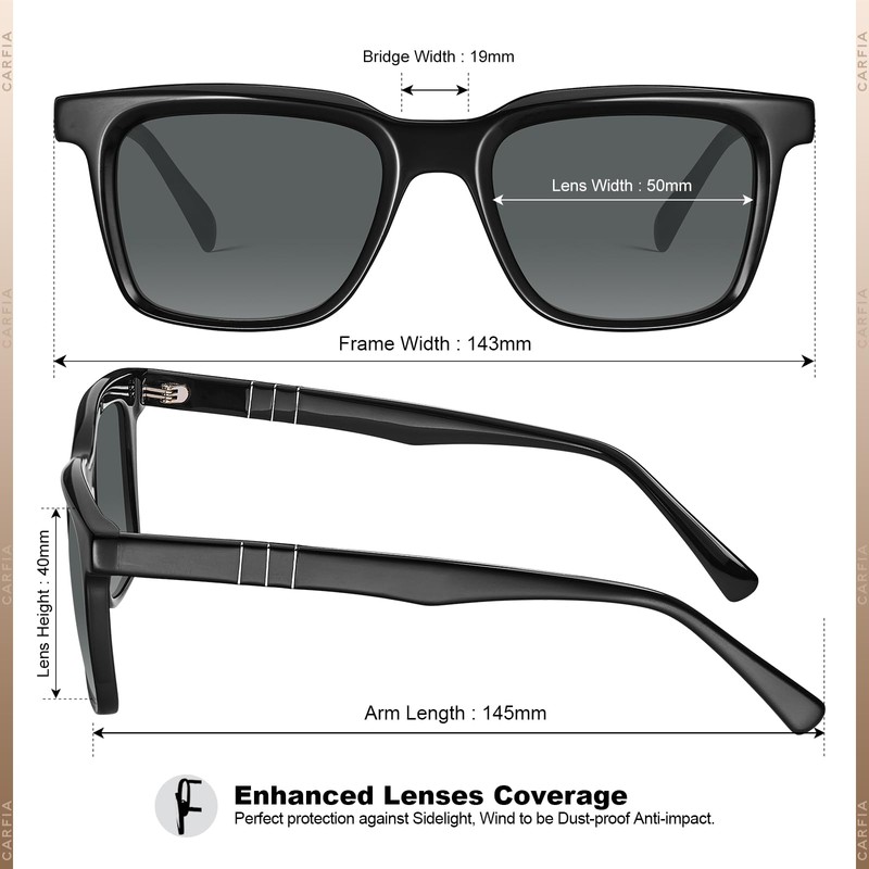 - When you buy glasses, you will get a hard box, a delicate Leather sunglasses case, a polarizing test card, and a soft cleaning cloth. CARFIA'S packaging design Exquisite and Practical just like a piece of art.In addition, we also provide 1 Free Replacement Service. CARFIA Always listen to your voice