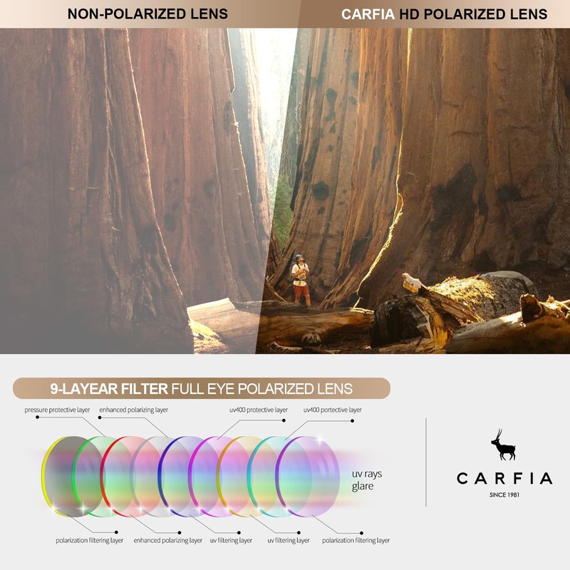 - Our Premium Polarized lens have pefect clarity, filter all kinds of polarized light and block glarer. Not only 100%UVA&UVB protection, but ability let you see life in vivid color
