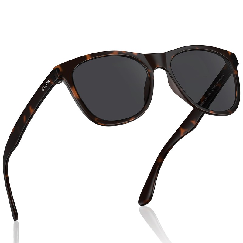 - 【PACKING & SIZE】-1x CARFIA Men Sunglasses; 1 x spectacle box; 1x cleaning cloth. Lens width: 53 mm, lens height: 45mm, bridge: 18 mm, frame width: 142mm, arm length: 145 mm.