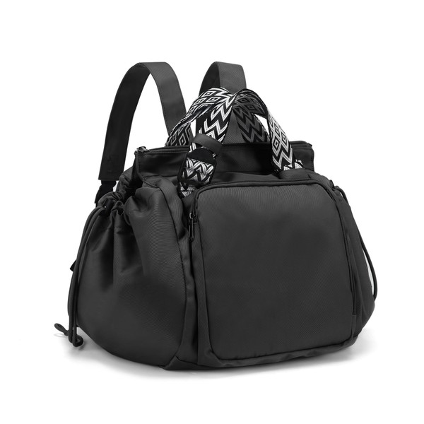 Carfond Large Capacity Portable Backpack Tote Bag For Car Travel, Lightweight Foldable Nylon Travel & Shopping Bag with 15 Pockets, black