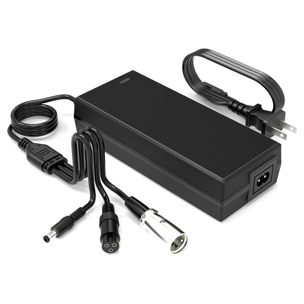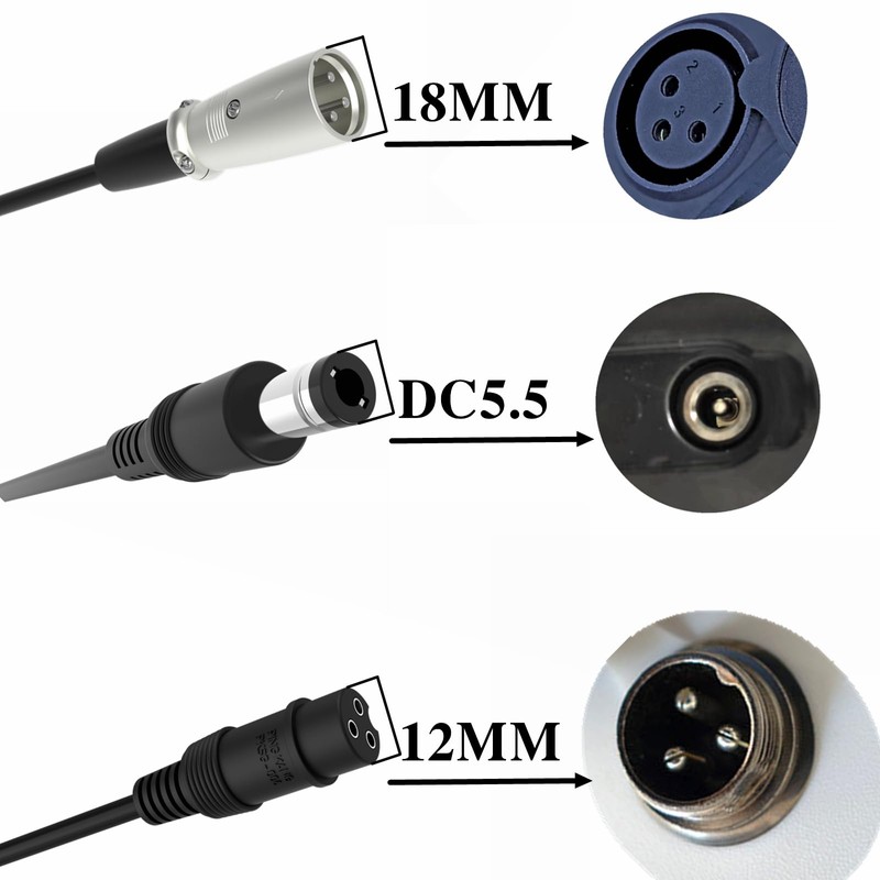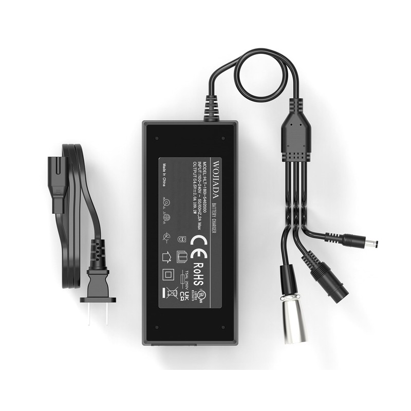 - Especificaciones: cargador de scooter de 54.6 V 2 A. Hay tres enchufes. Combina con algunas marcas de bicicletas eléctricas.